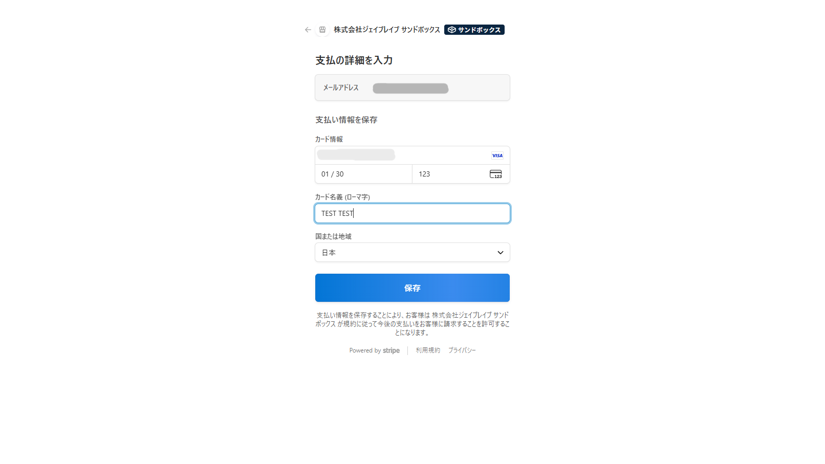 [5] クレジットカードの支払い情報を入力後、「保存」を選択