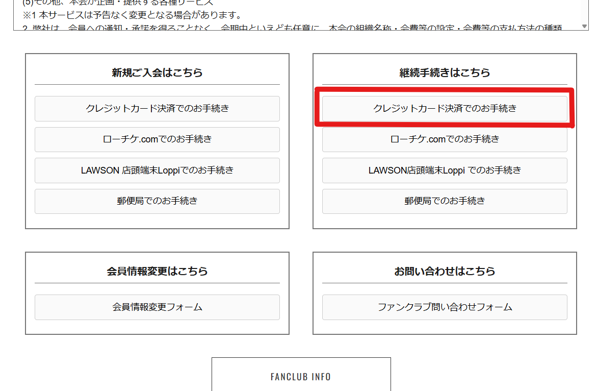 [2]「継続手続きはこちら」枠内の「クレジットカード決済でのお手続き」を選択