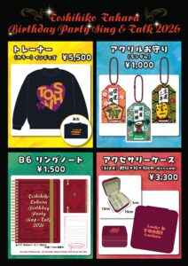 「TOSHIHIKO TAHARA Birthday Party Sing&Talk 2026」新グッズ販売のお知らせです!